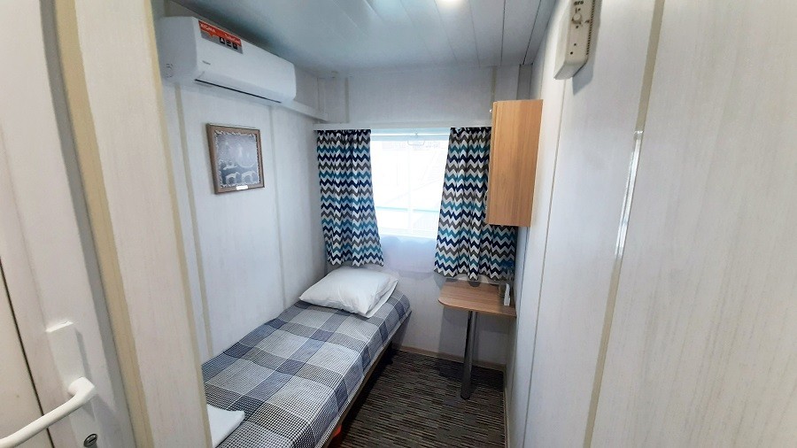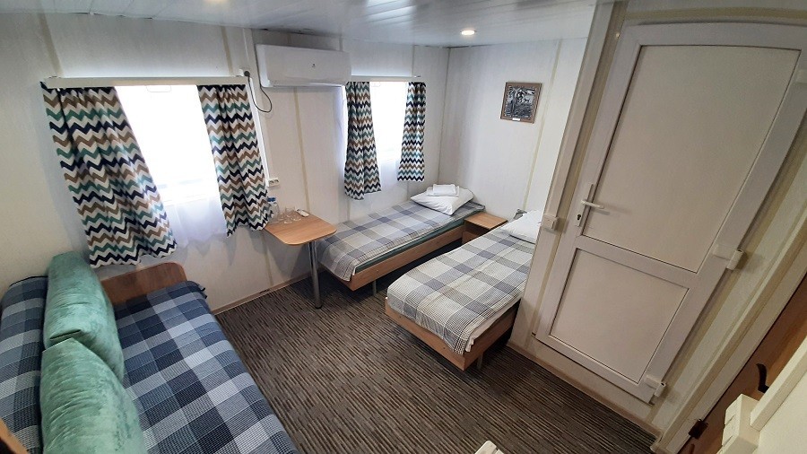 Для комфортного размещения от 1 до 4 человек на теплоходе представлены различные категории кают: 25 двухместных с возможностью размещения третьего или четвертого гостя на дополнительных местах; 16 стандартных двухместных кают; 9 четырехместных и 4 одноместные каюты.