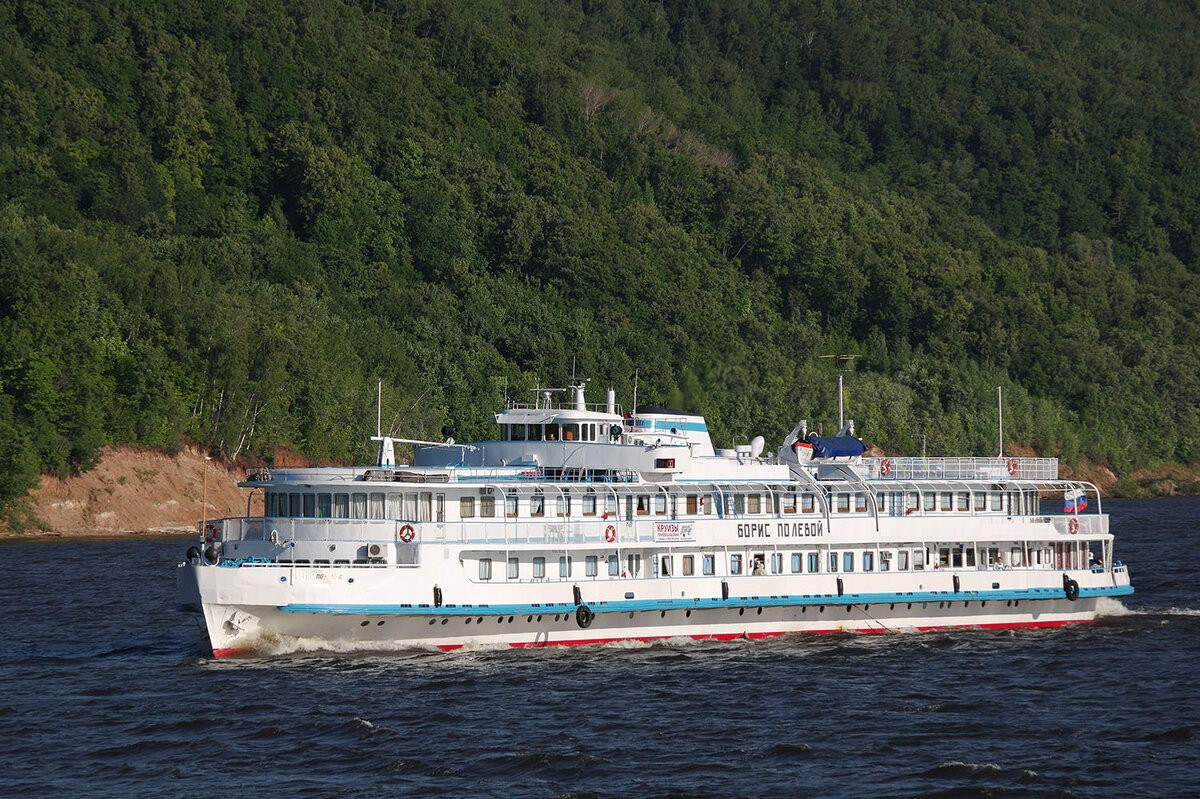 «Борис Полевой» – уютный двухпалубный теплоход-пансионат 305 проекта, построенный в Венгрии и выполняющий круизы не только по главной реке страны – Волге, а также по Каме, Вятке, Оке, Белой и Суре.